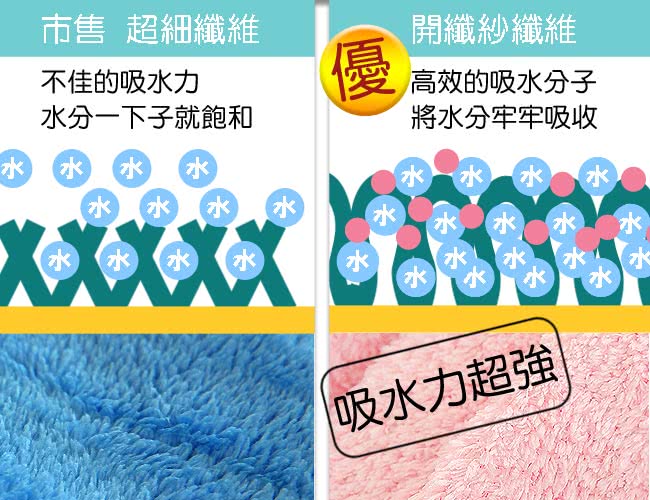 3.經1728條多層次的開纖吸水紗組成,市售超強吸水材質